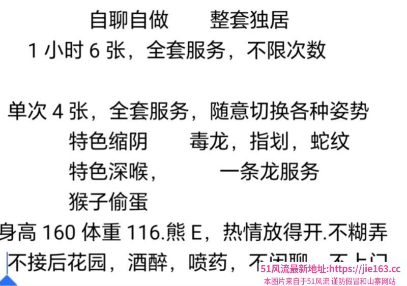 服务项目:锁喉,缩阴,胸推,蛇纹。漫游,毒龙角色扮演