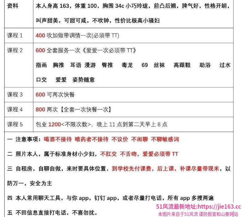凡是有要求路费/定金/保证金/照片验证/视频验证等任何提前付费的行为,千万不要上当。同时也请注意仙人跳,在寻欢前不要露富和带过于贵重随身物品。本站为分享信息并不对寻欢经历负责,碰到有问题的信息,请及时举报给我们删除信息。部分小姐姐较为敏感,所以请在联系对方时不要透露此条信息来源。https://bz904.cc/item/218450